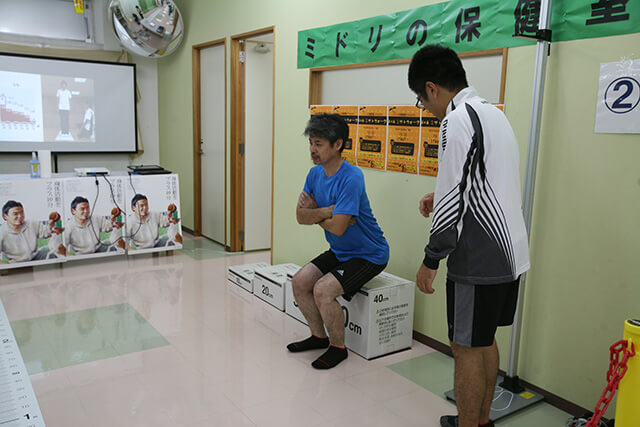 ミドリの保健室で行われるのは、そのうち2つの「立ち上がりテスト」と「2ステップテスト」。