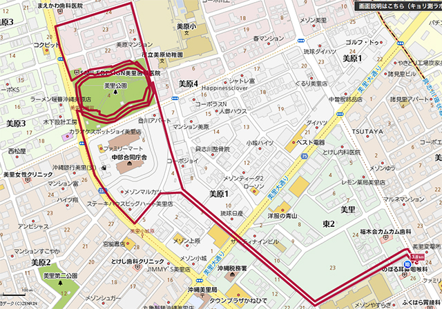 街中にある美里公園は、沖縄市美里一帯の老若男女の多くの方に、朝早くから深夜まで利用されています。