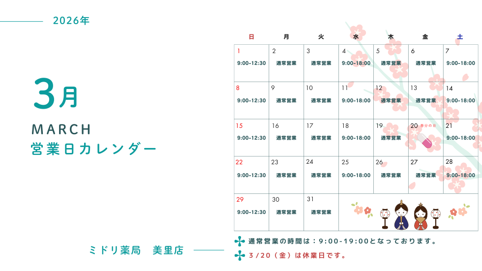💊 休業日:3/20(金)春分の日
